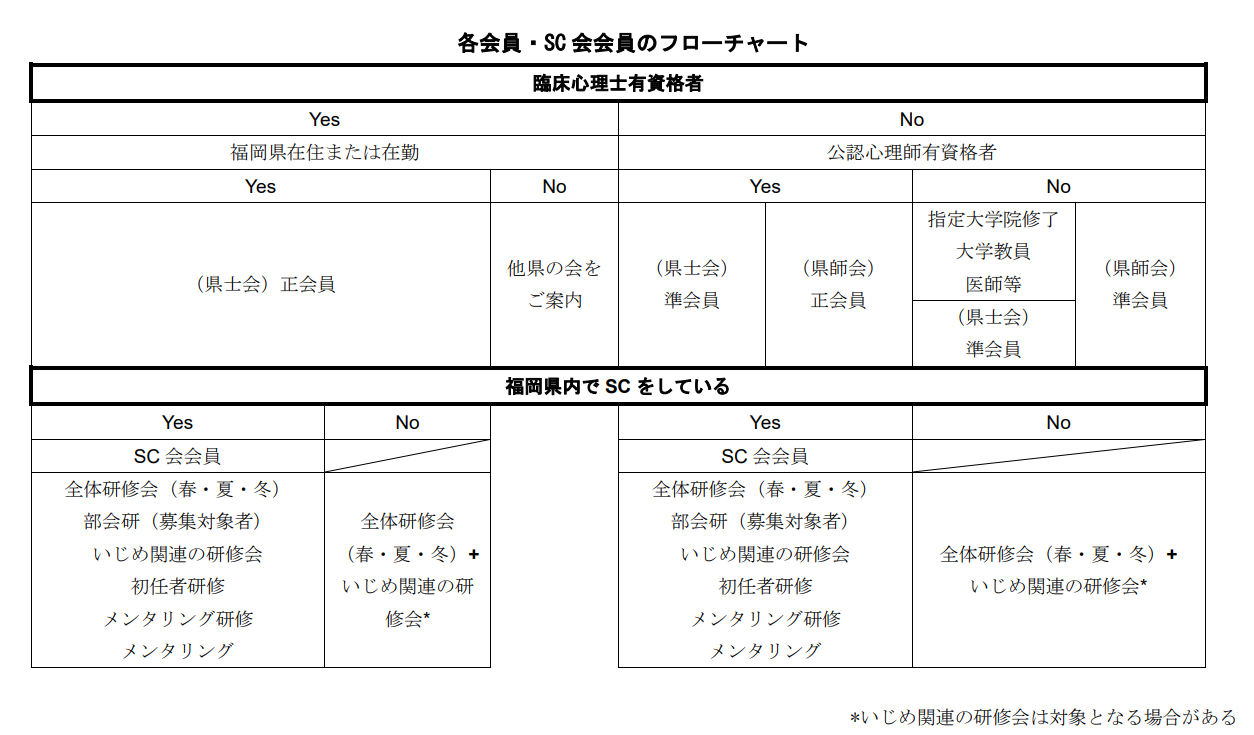 正会員:協会の認定する「臨床心理士」有資格者で、福岡県内に在住又は在勤する者